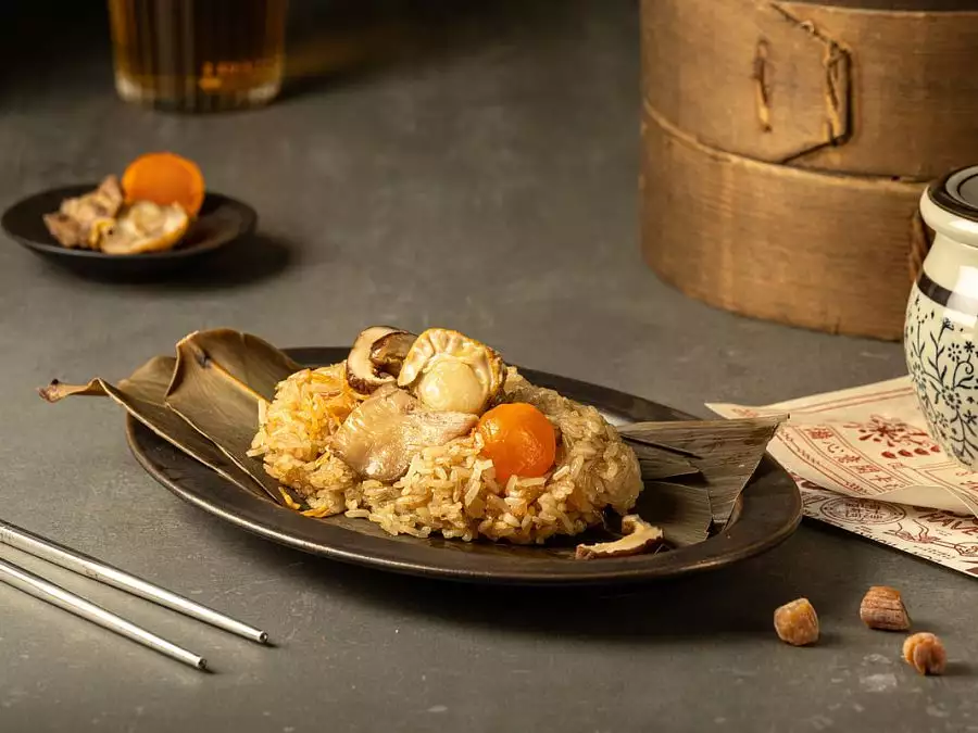 成分:北海道帆立貝、頂級冬菇、去骨雞腿肉、鹹蛋、長糯米、蠔油、豬油、油蔥